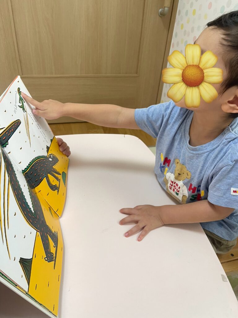 読み終えると、「もういっかい。」と気に入ったページを見ていました。