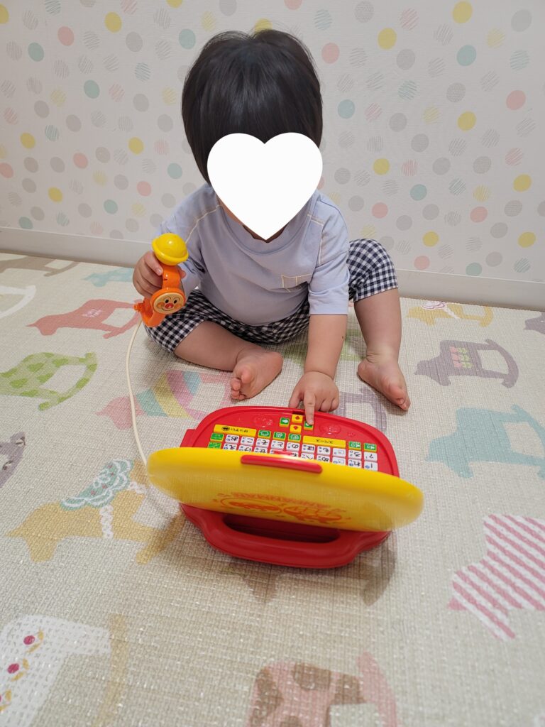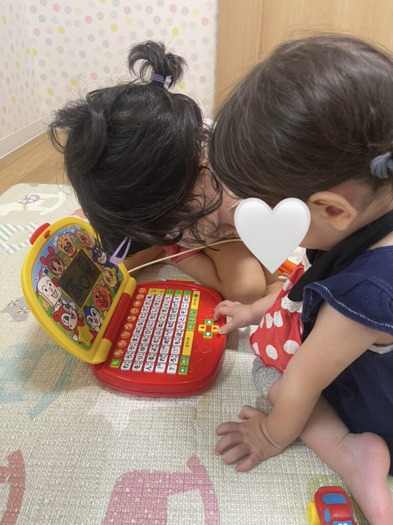 アンパンマンのパソコンおもちゃで仲良く遊びました。