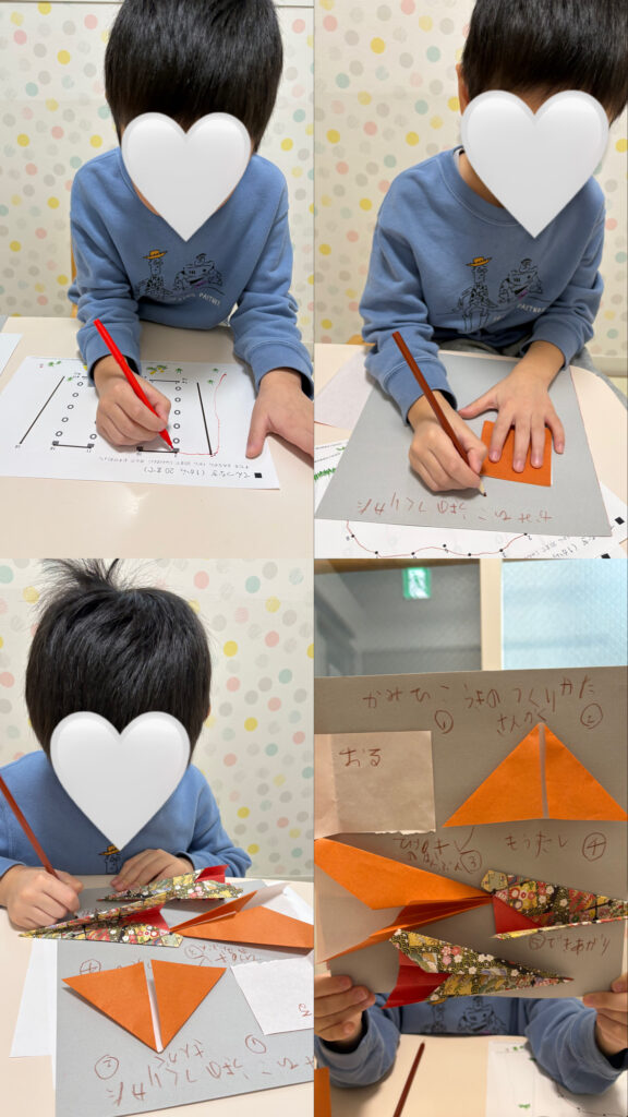 「なにかつくろうかな」と、自ら考えて、紙飛行機の作り方を制作してくれました。