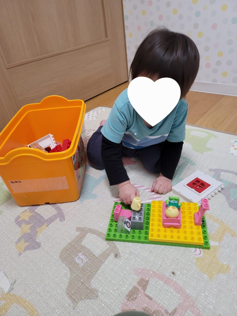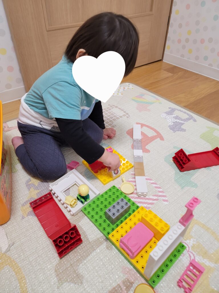 シール貼りの後はブロック遊びをしました。