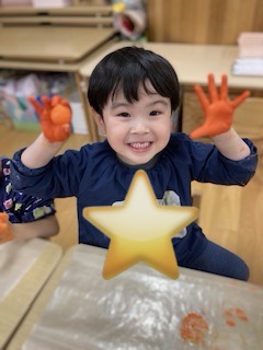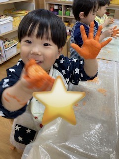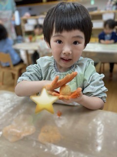 いつもと違う粘土の感触にみんな楽しそうでした。紙粘土に絵の具を混ぜて、たくさんこねて丸めました。