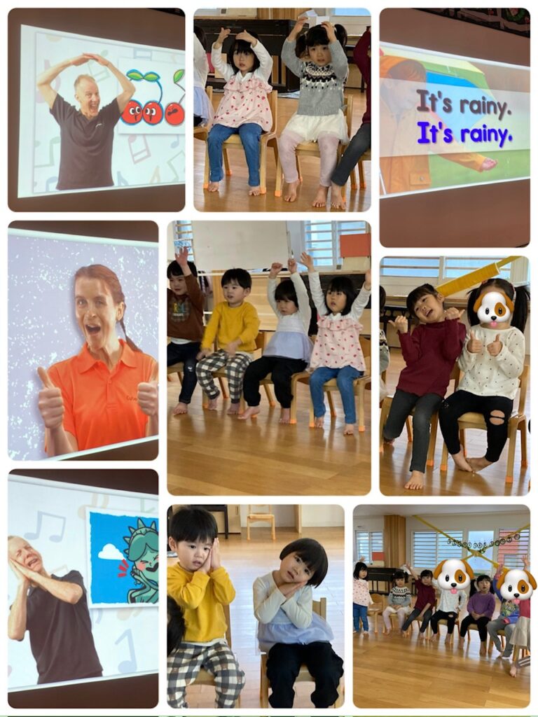 大好きなABCソングをノリノリで歌い、映像を見ながらどんな気持ちを表しているかを英語で答え、正解すると「グッジョブ」がもらえるので、それを楽しみに頑張っている子どもたちです。