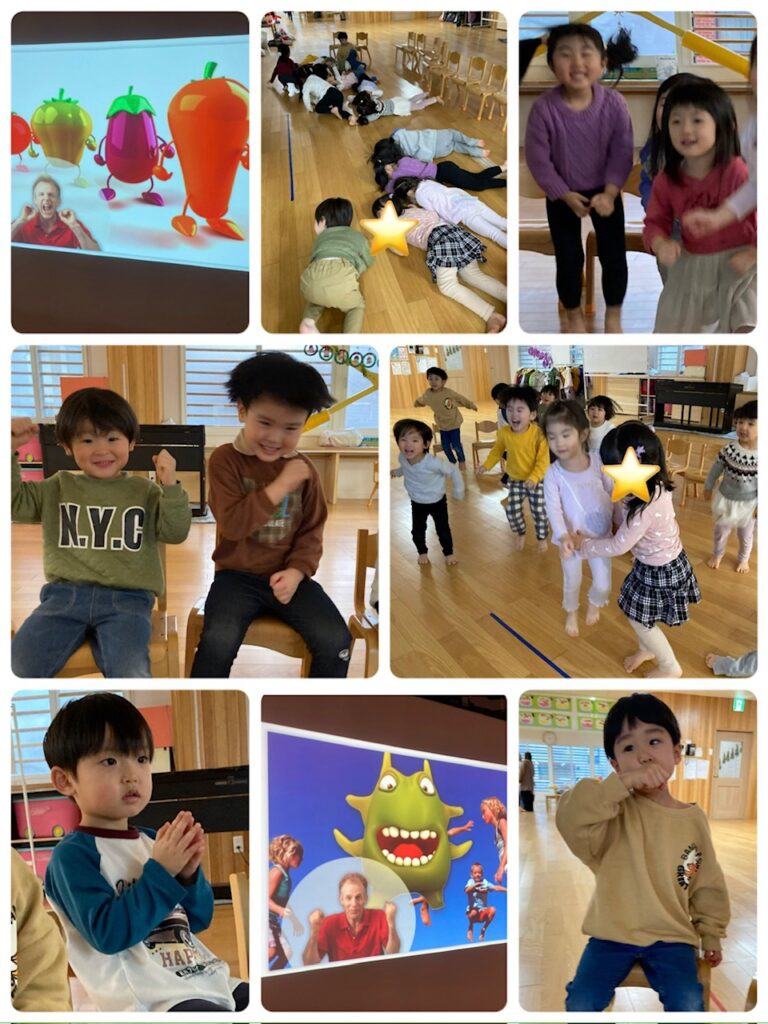 12月のテーマ『Toys』でテンションがあがったり、手遊びやマジックを見て、最後はお楽しみのアクション。