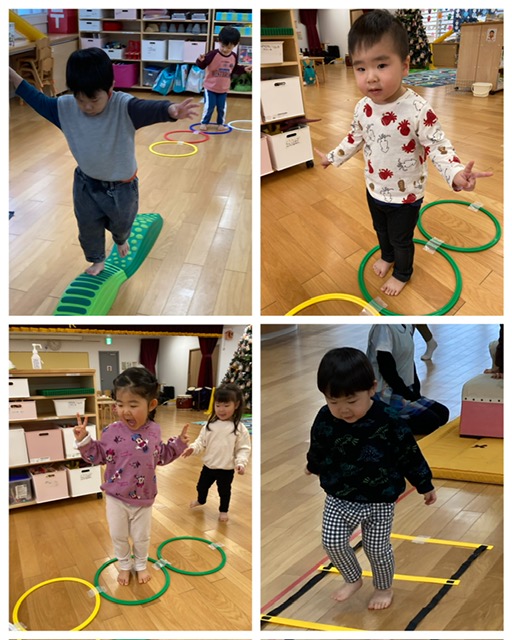 サーキットの準備をしていると「今日は何するの?」と目を輝かせていた子どもたち。