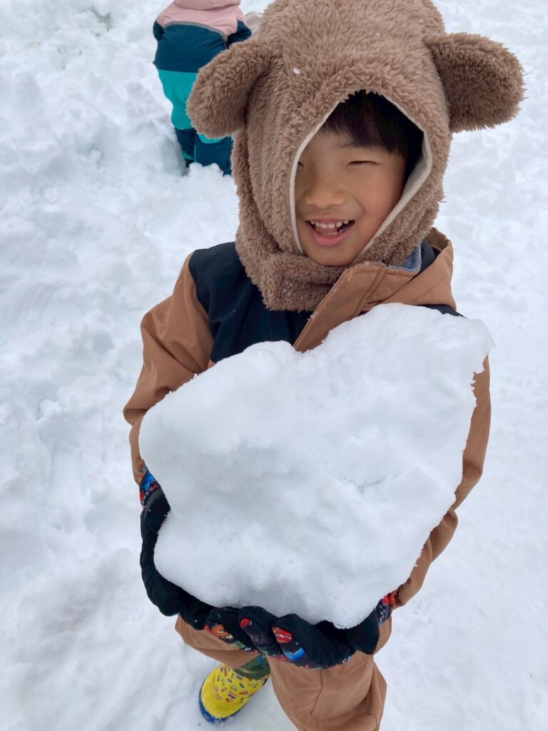 雪が湿っていたので、雪のかたまりが簡単に出来ました。大きなかたまりをたくさん作って遊びました。
