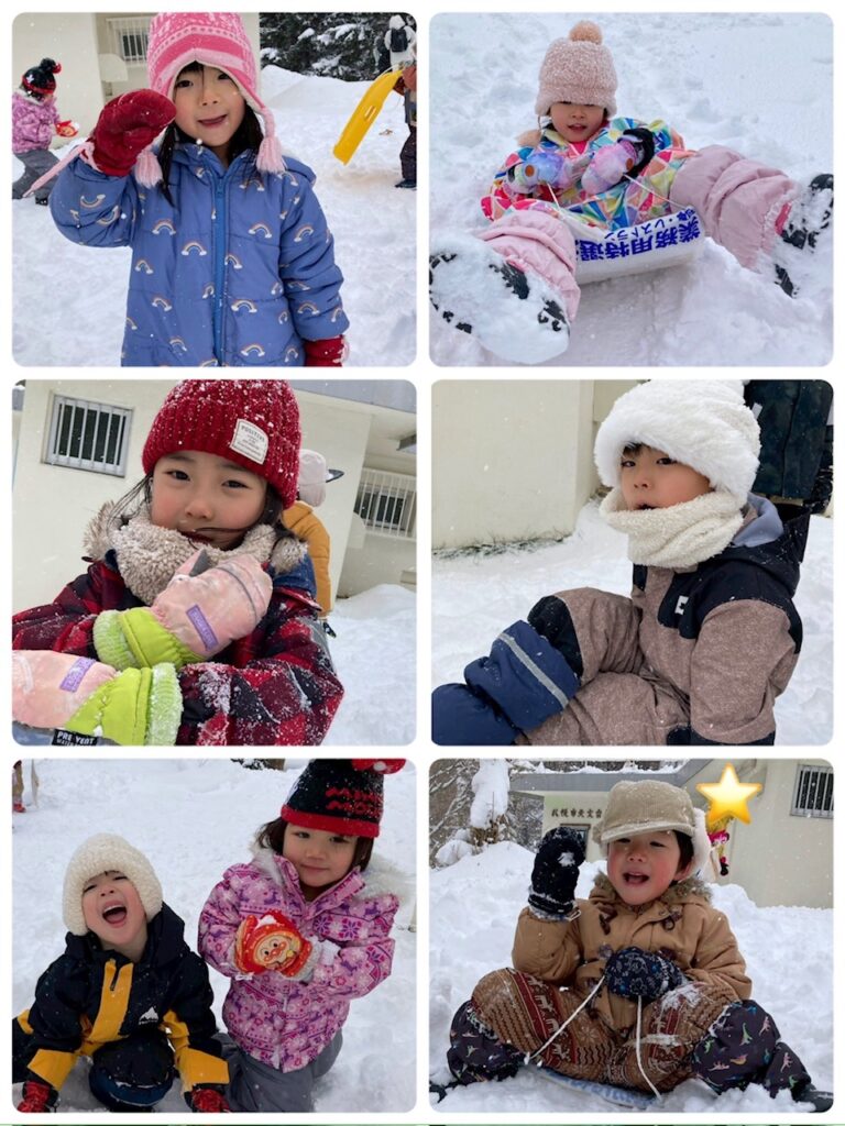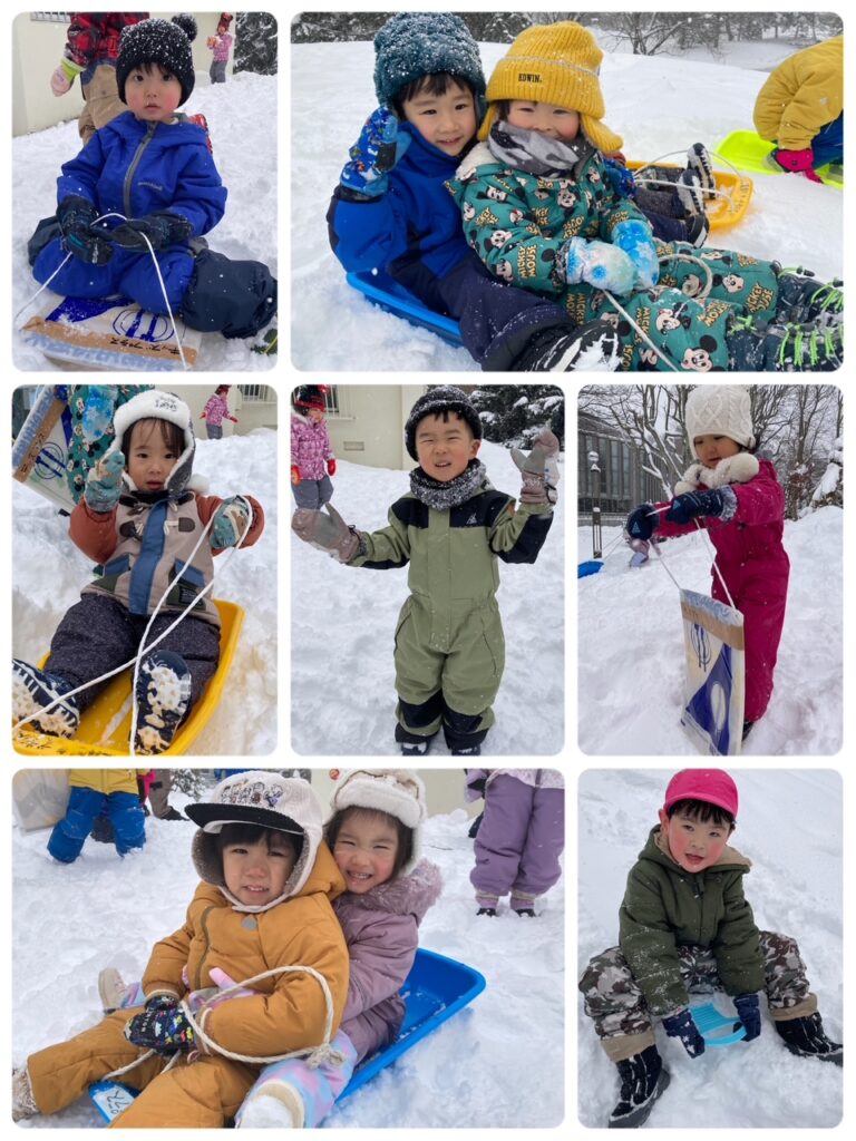 雪山も盛り盛りで、ソリで滑ろうとしても進まず「先生、押してー」と助けを求める声がたくさん聞こえてきました。