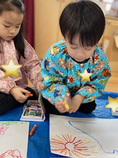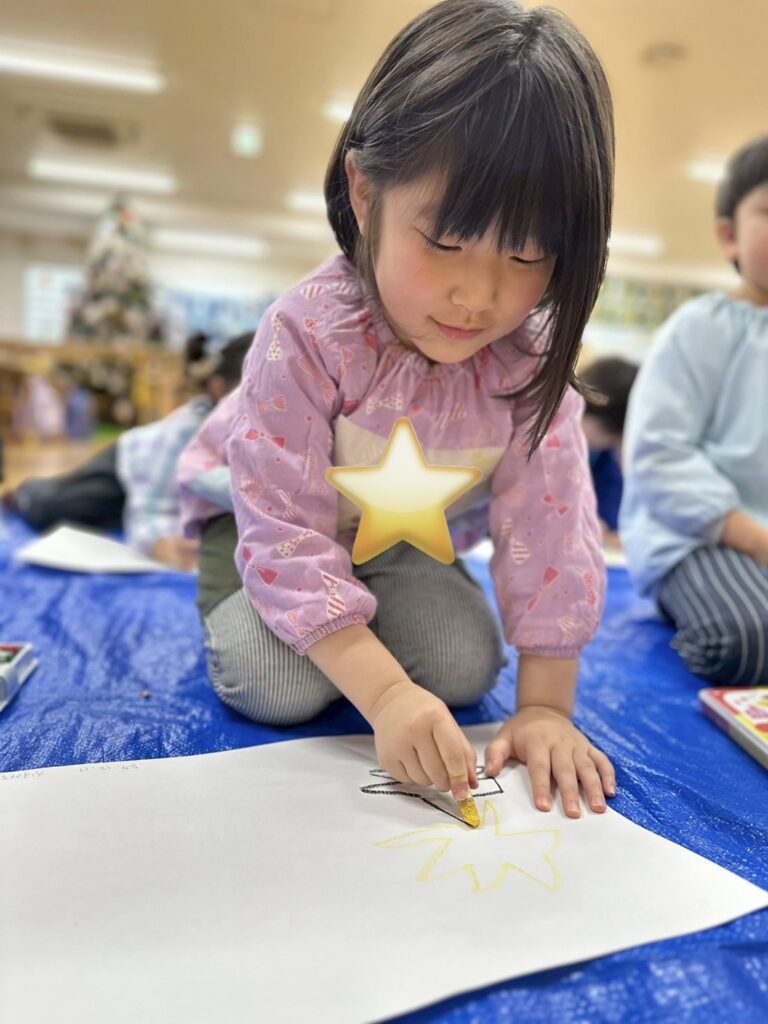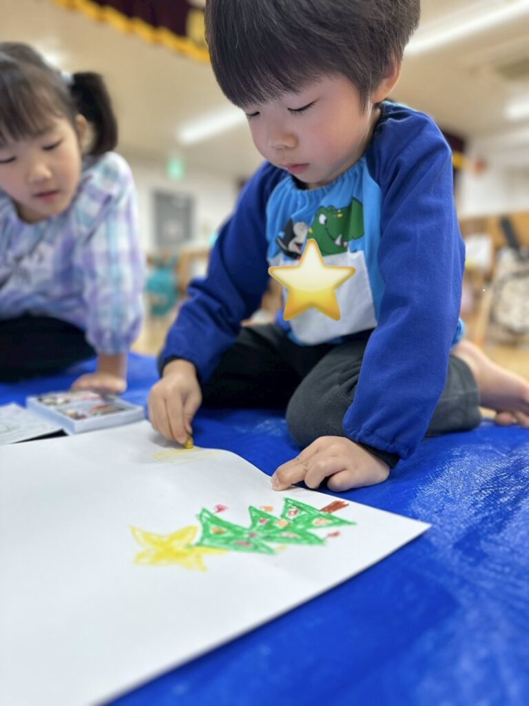 大きいさくら組は、クリスマスの絵を描きました。各々が思い浮かぶクリスマスを描き、ツリー・サンタクロース・プレゼントなど、個性豊かな絵が完成しました。