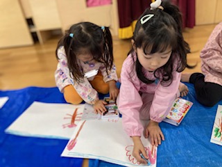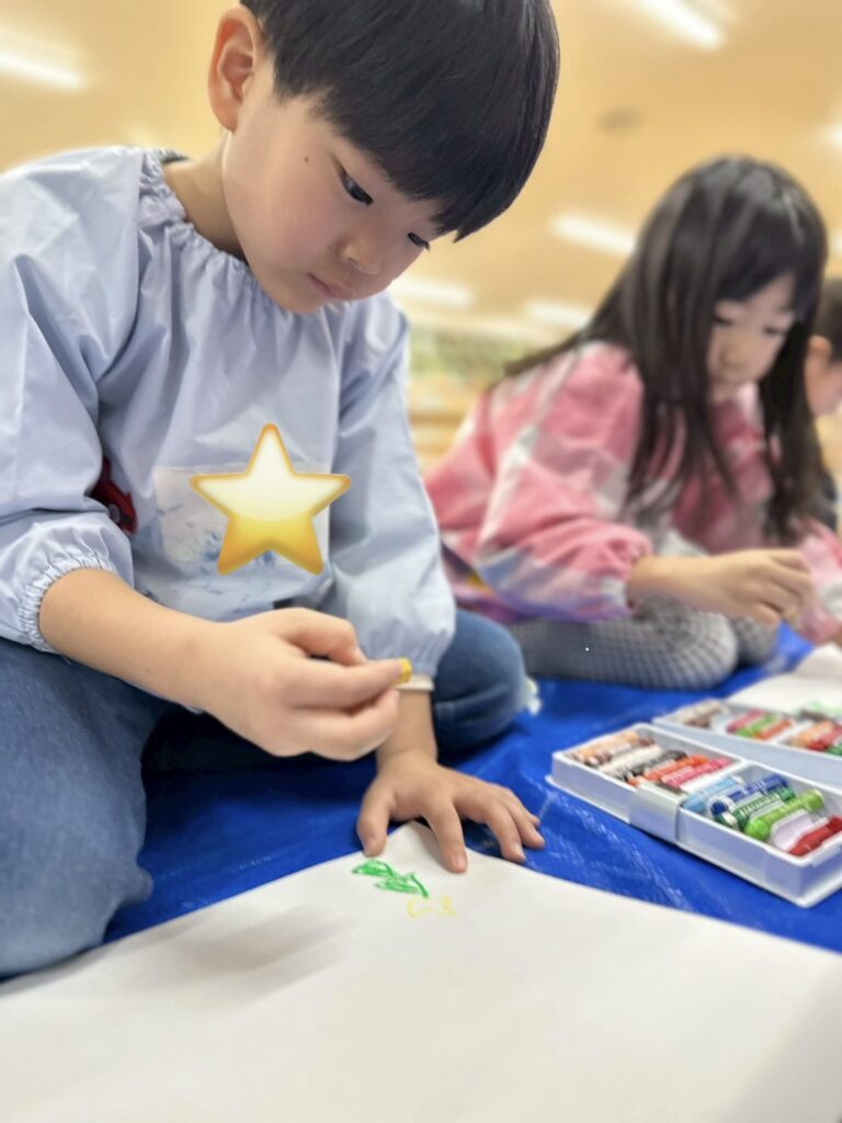 小さいさくら組は、1月の富士山、11月のハロウィンなど月ごとの絵を描いたり、春の風景、雨の日など講師の先生と考えたお題に沿って絵を描きました。
