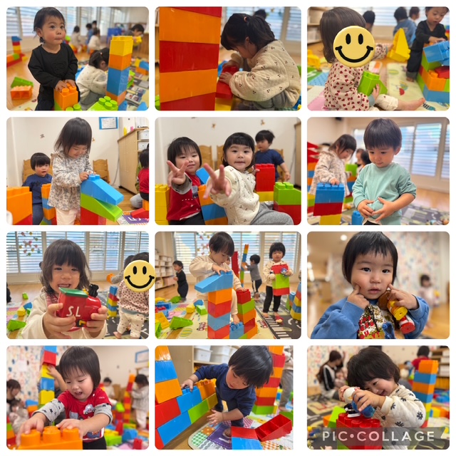 今日はもも組さんへの進級に向けて、リュックを背負って2階のもも組さんへ行き、デカブロックで遊びました。いつもは遊ばない場所での活動にわくわくした表情で、目を輝かせていたいちご組のみんな。とても楽しそうにデカブロックを手にお家やお馬さんを作り遊びました。隣のさくら組さんやうめ組さんの空手の掛け声に、圧倒され見入るお友達も沢山いました。