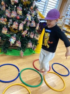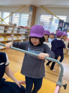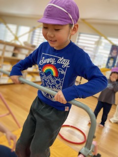 跳び箱では踏み台を思いきり踏むこと、脚を広げる事を意識しながら頑張りました。マット運動では、後転に挑戦。支えてもらいながらも成功することで、自信につながっているようで良かったです。