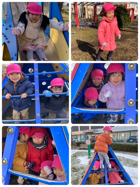 公園では滑り台やピラミッド、そして大好きな鬼ごっこを楽しみ、公園中に子どもたちの賑やかな笑い声が響いていました。