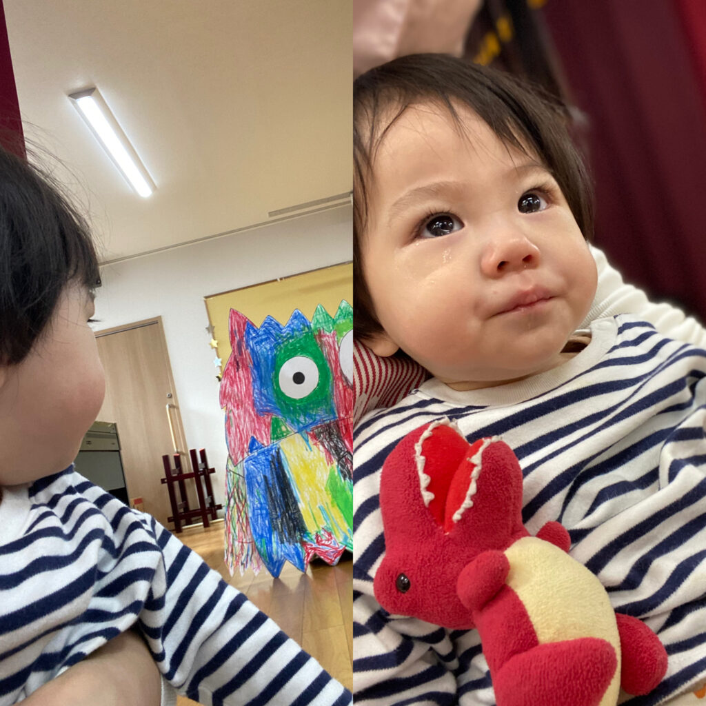 さくらんぼ組さんは人数が少なく、少し寂しい思いもありましたが、お兄さんお姉さんのパワフルなお遊戯を見て元気をもらいました。