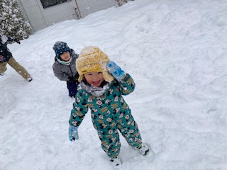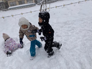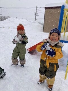 雪が降る中で公園に行きましたが、公園にはふかふかの雪がたくさん積もっていて、雪遊びを存分に楽しむことが出来ました。