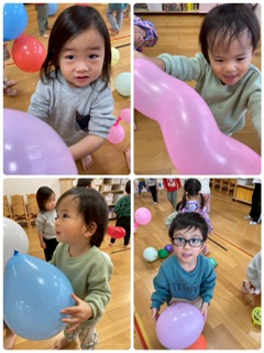 今日のバランスタイムはグラグラで、倒れ込むお友だちが多かったので、次回頑張ってもらいたいと思います。