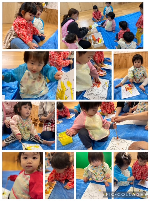複数の色が手の中で混ざり合ったり、タンポのお水で色が薄くなる様子を楽しんでいました。