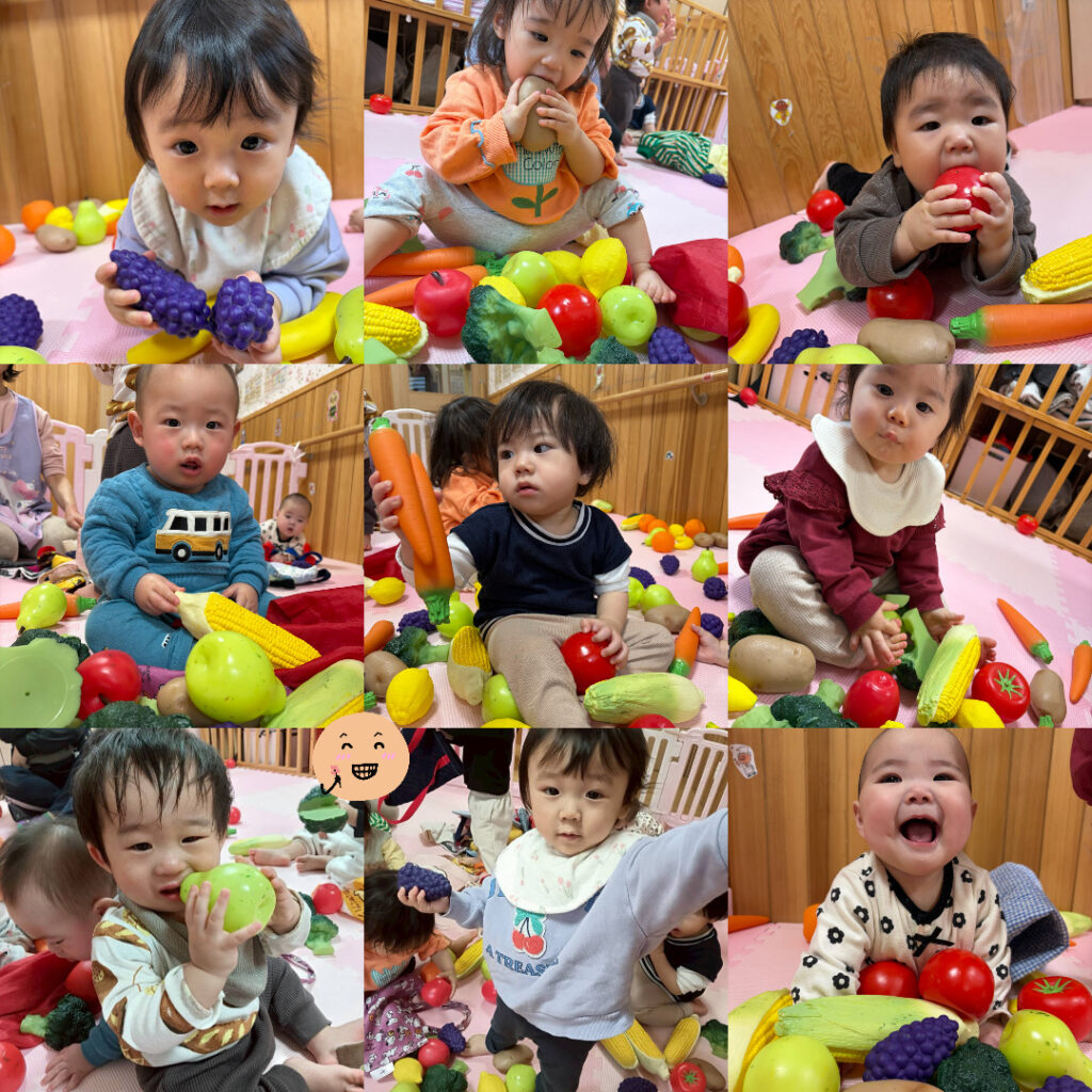 大きい果物、野菜に興味深々なさくらんぼ組さん。