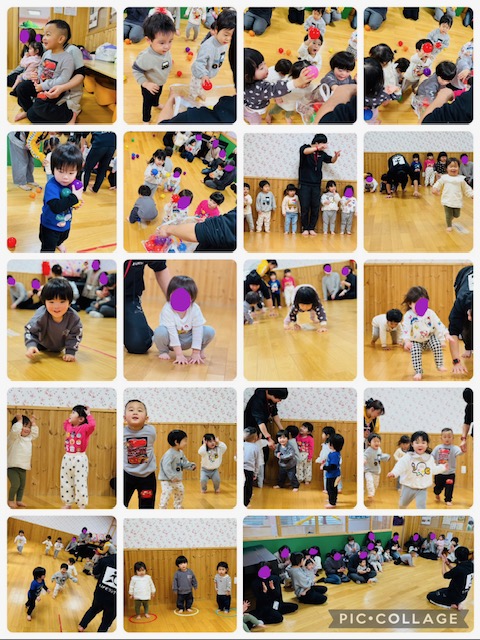 最後はU字型の運動器具でお腹の力で身体を支える力をつけました。バランスよく上に立ち、揺れるとみんな倒れることなく、立って揺れることができていました。とっても上手で驚きました。
