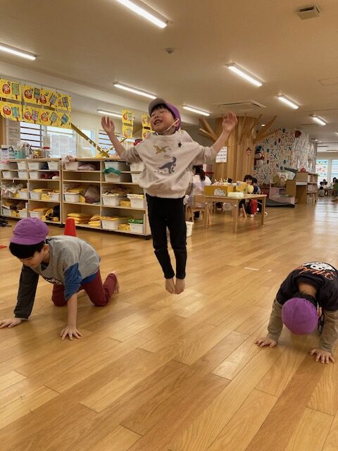 本物の鬼が登場すると、みんなびっくりしてしまい、泣き出してしまうお友だちもいましたが、一生懸命豆をまいて、追い払いました。