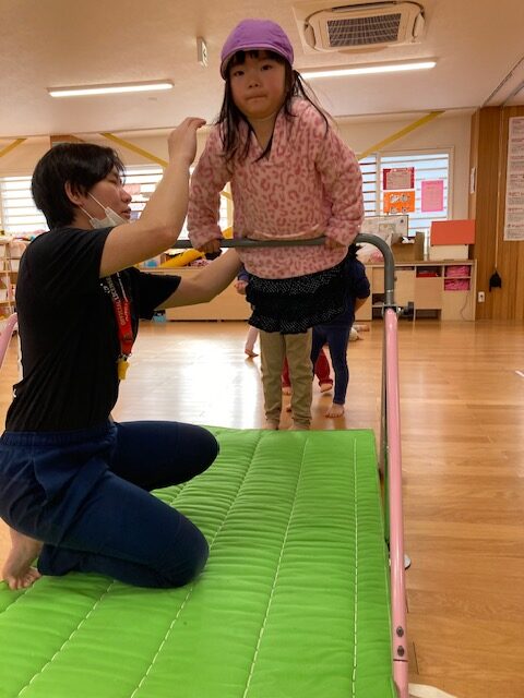 まずは箱で出来た鬼をボールでやっつけました。