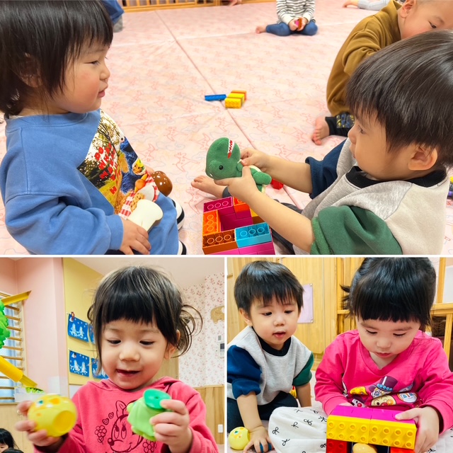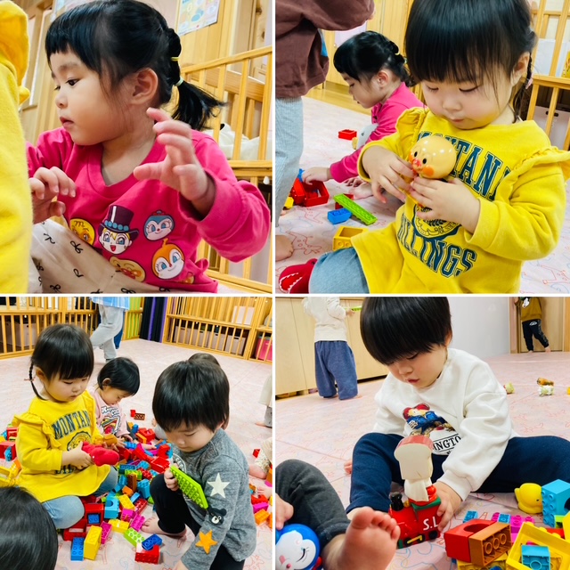 お気に入りの人形を大事に手に持ち、名前を教えてくれたり、レゴの色を教えてくれる子どもたち。お喋りもとても上手になりました。