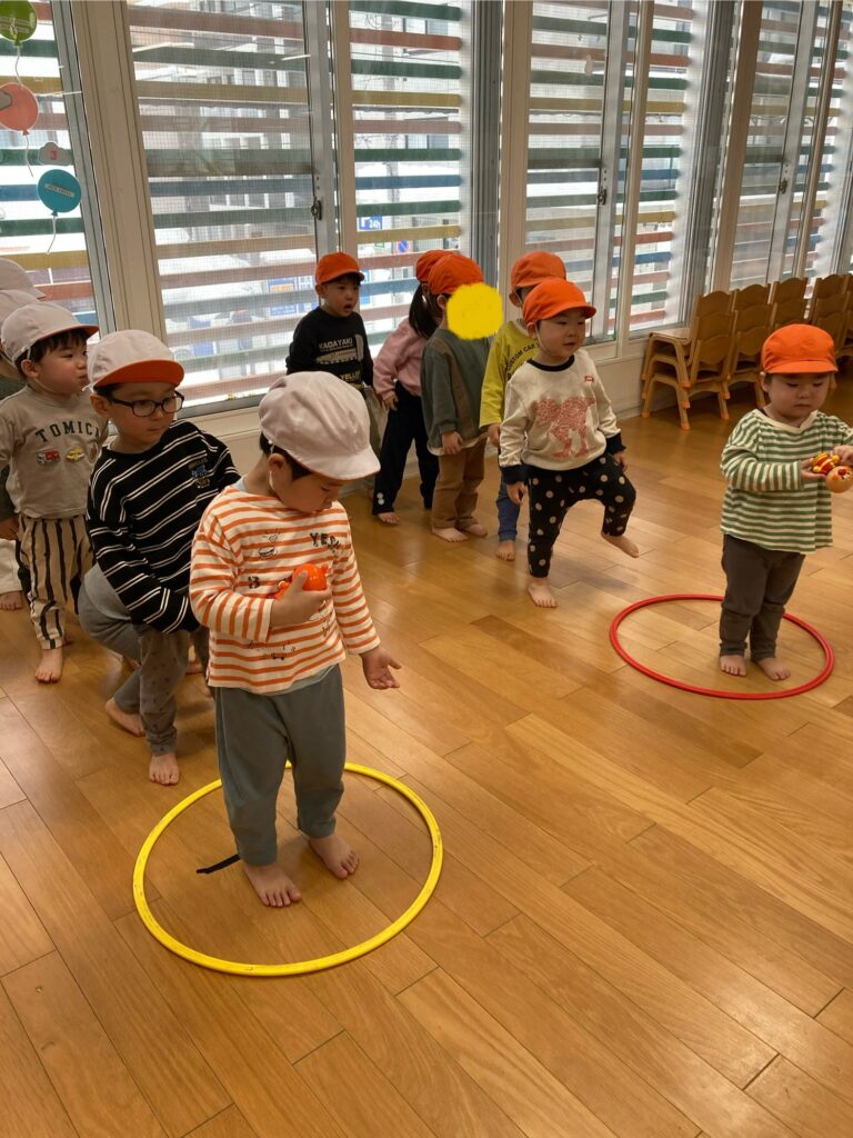 順番を待つ時は一列に並ぶことを伝えると、子どもたち同士で声を掛け合い、かっこよく一列に並ぶことができましたよ。