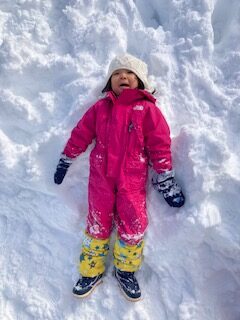 雪はふかふかで、雪をたくさんかけてみたり、寝転んで感触を楽しみました。