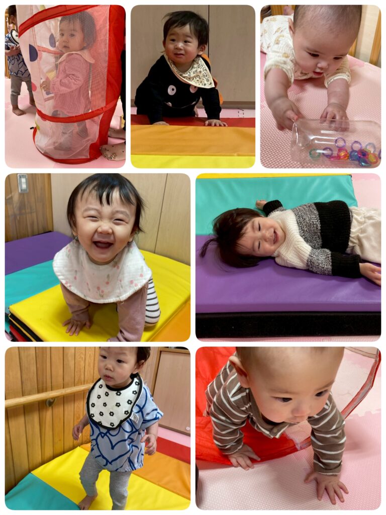 ピンクと水色の画用紙に、前回みんなでビリビリとさいたカラフルな折り紙を貼りました。