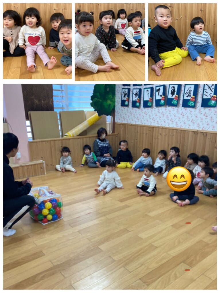 ボールを使った後は次のお友達に渡します。優しく渡す、が上手にできました。