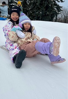 天文台広場の坂はそりすべりにぴったりの状態でした。