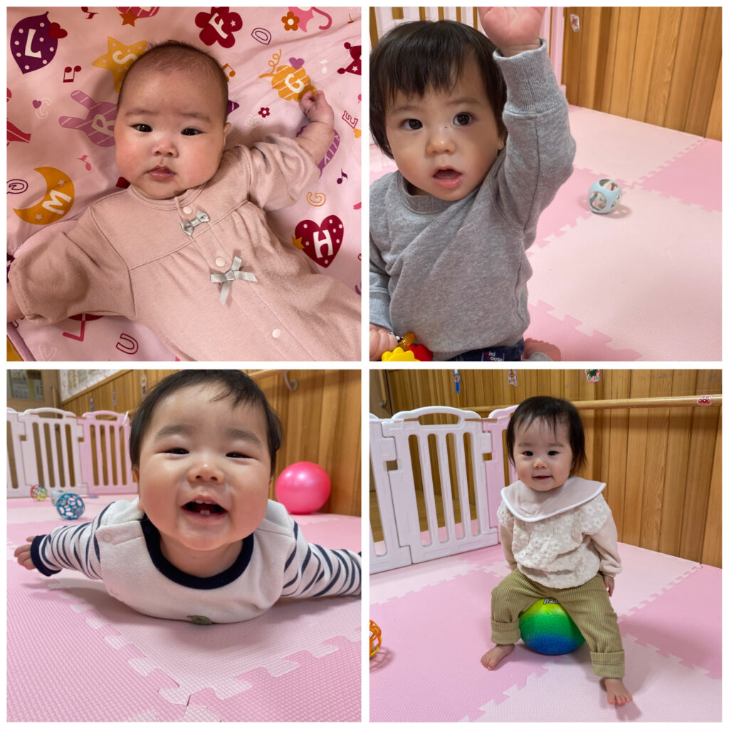 さくらんぼ組のみんなは連休明けで眠たくなってしまう事もありましたが、「ぽい!」とボールを投げる姿や、一生懸命お友達や玩具を目で追ってキャッキャと楽しく過ごしてくれました。