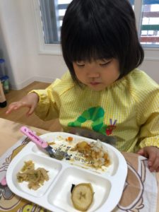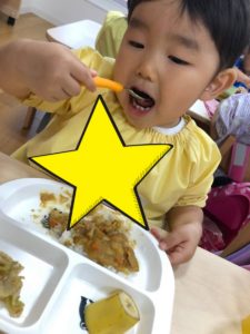 メニューはポークカレー!もりもり食べていましたよ♬