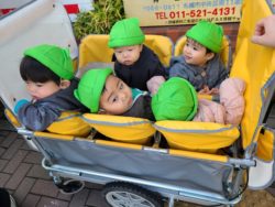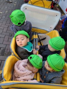 2020年11月05日(木) 11月5日 いちご・さくらんぼ組 今日は午前中に市電をみにいきました。 風の吹く寒い中でも、子ども達は元気いっぱい!!周りのものを見るのに忙しく、寒さも感じていないようでした^ – ^