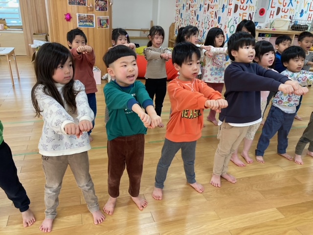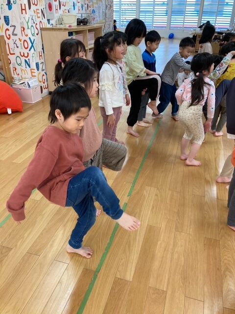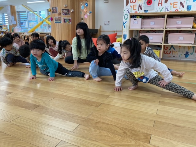 講師が1、2、3、4と数えると、その3倍くらいの声量で「ごー、ろく、しち、はち!」と張り切る子どもたち。