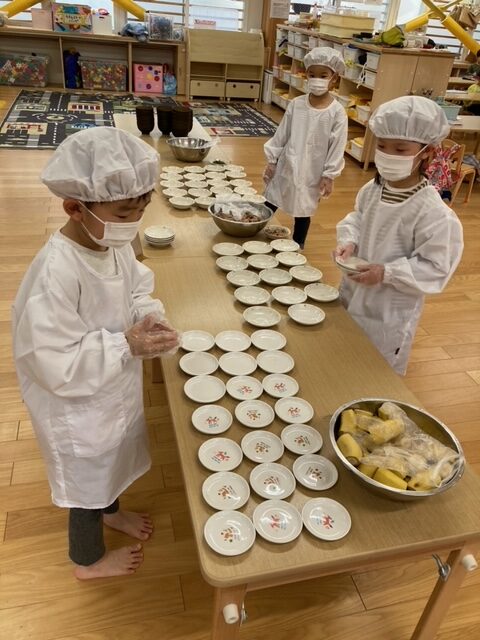 前回お伝えした給食当番ですが、今週から、本格的に始まります。