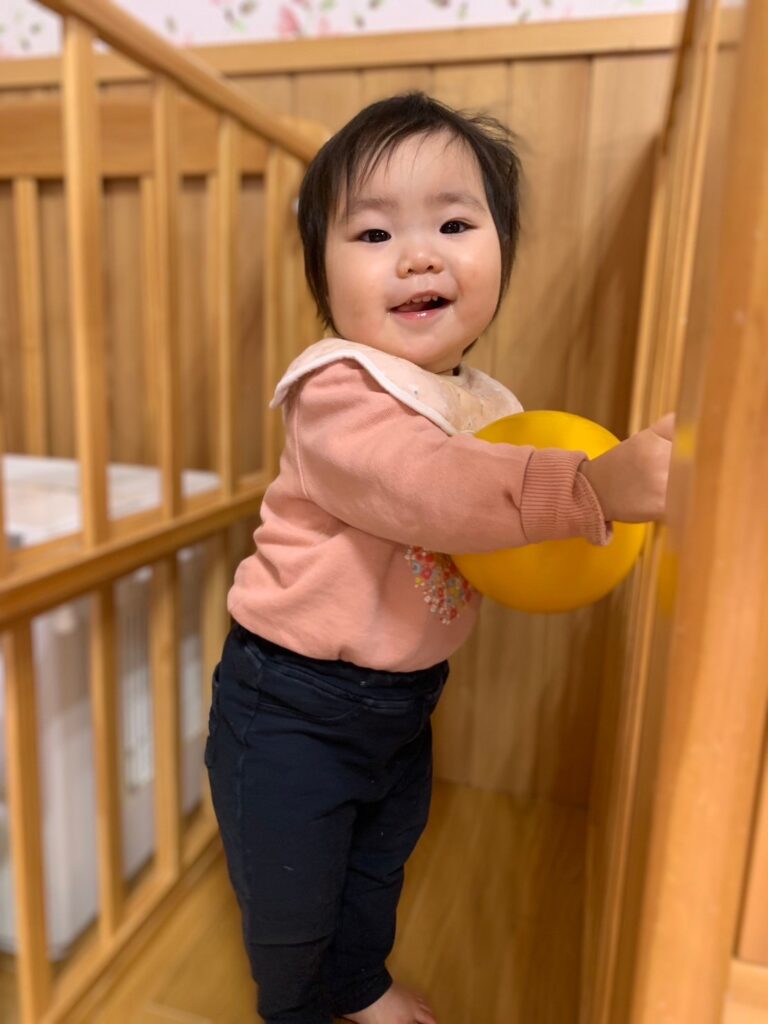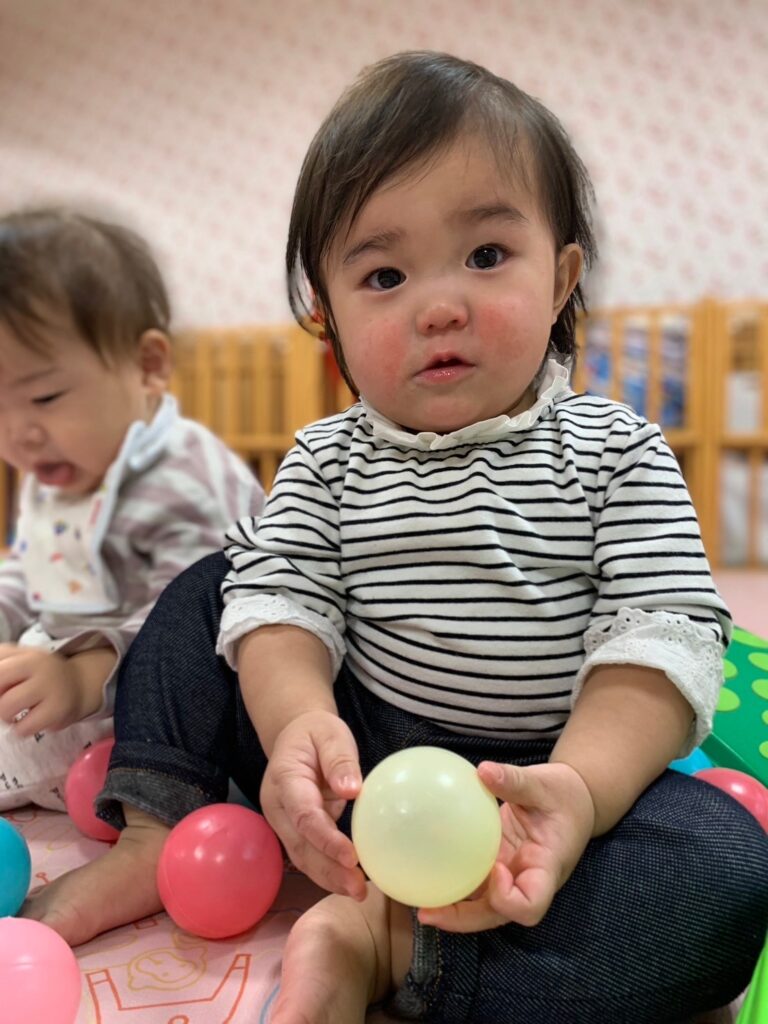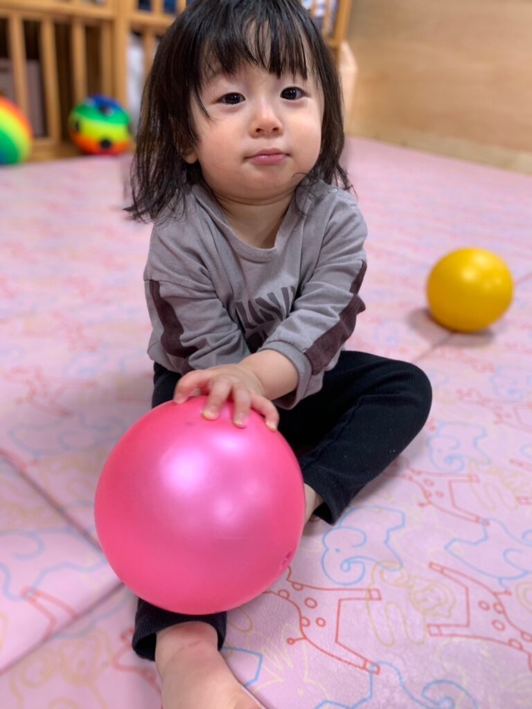 お部屋の中の子どもたちは元気いっぱい、今日はボール遊びをしました。
