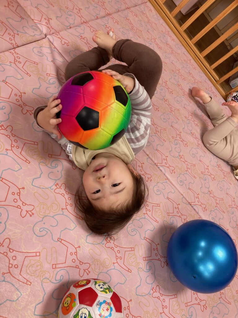 保育者と一緒に転がして遊んだりもしましたよ。