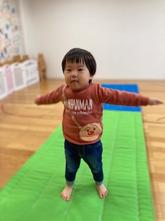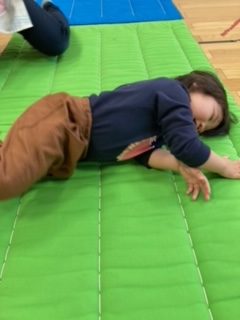 転がる時にマットから落ちないように真っ直ぐ進もうとする子が多かったです!