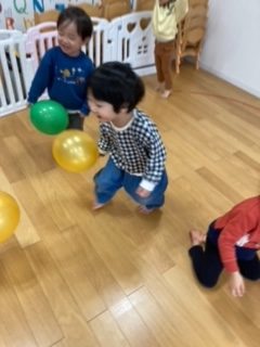 風船遊びではキャッチしたり飛ばしたり、楽しそうに遊ぶ様子が見られました。