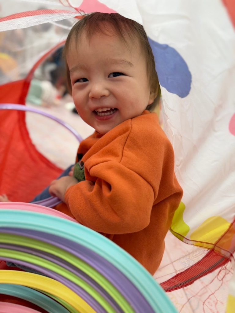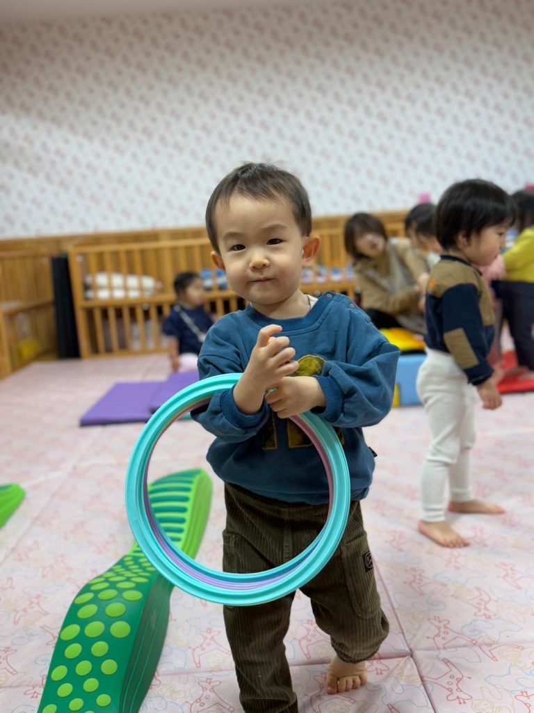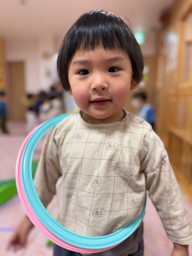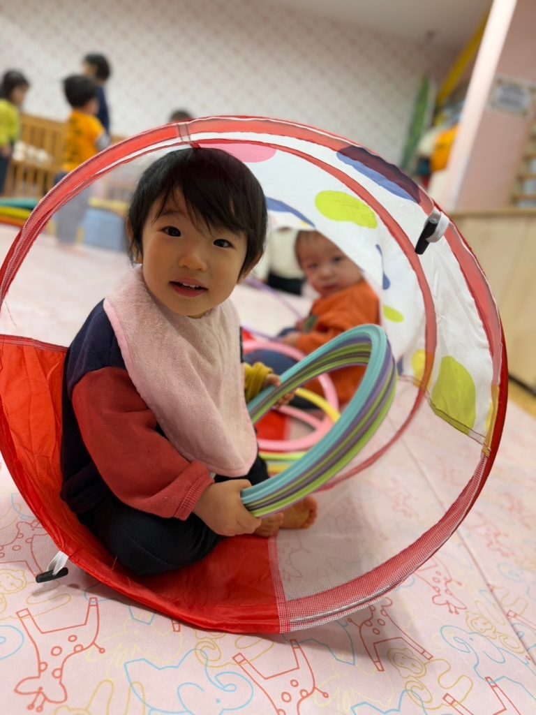 2024年12月04日(水) 12月4日 さくらんぼ、いちご組 今日は室内で運動遊びをしました。トンネルをくぐったり、ウィープレイの上を歩いたり、マットからジャンプをしたり、フラフープで遊んだりとそれぞれが体を動かして楽しんでいましたよ。