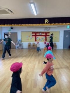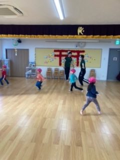 最初は友達とぶつからないように両手を広げて走ります。