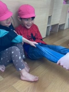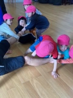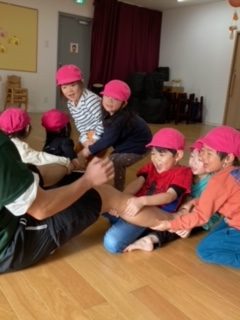 次は講師1人を園児全員で引っ張りました。