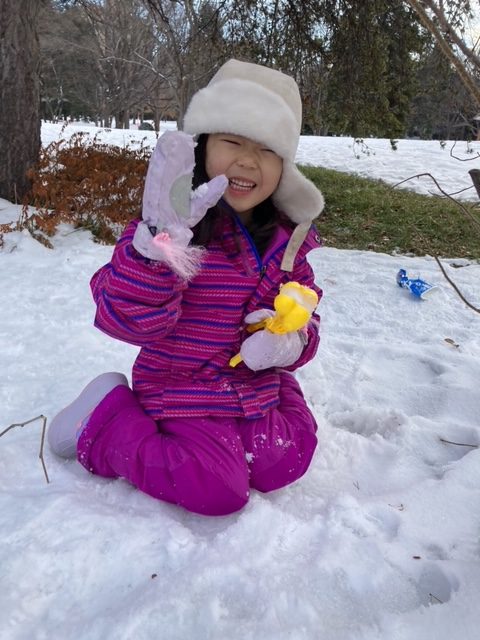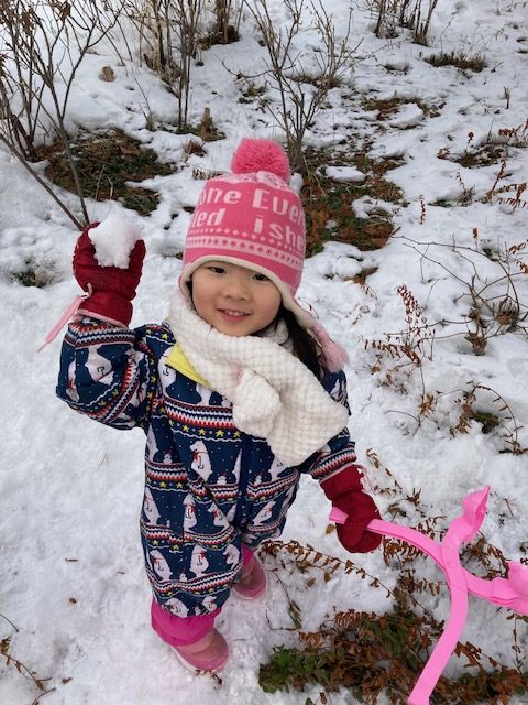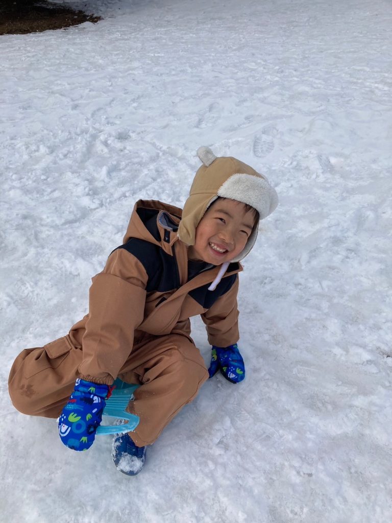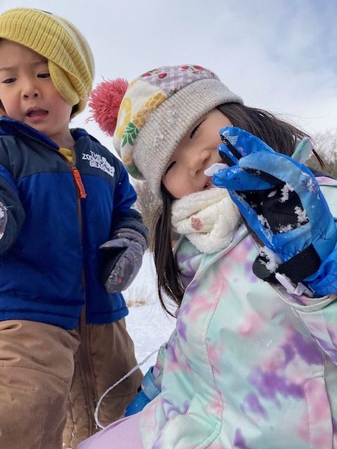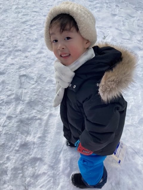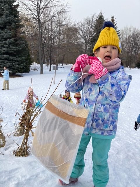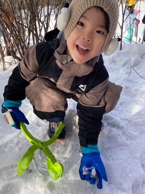 道具を使った”雪玉作り”では、作りやすい雪を探して歩く姿や、綺麗に型が取れると、「見てみてー!」と嬉しそうにお友だちに見せる姿もありました。