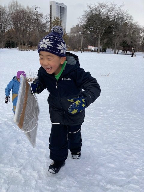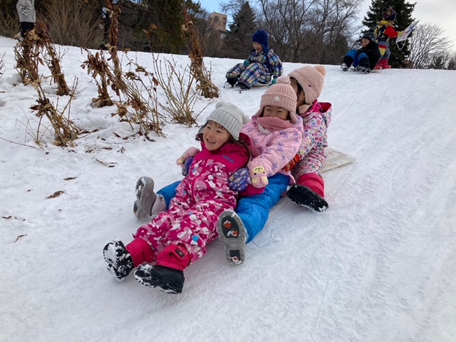 今日は「中島公園」へ雪遊びに行きました。