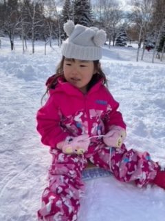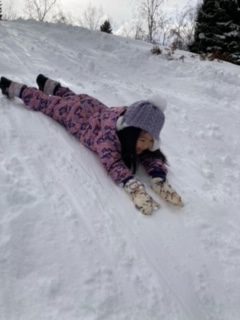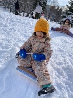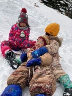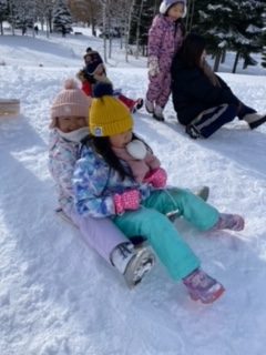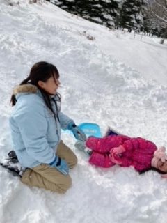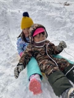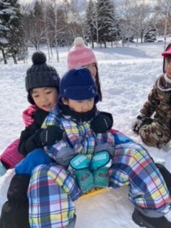 お友達とつながって、滑ったり3人で滑ったりとても楽しい雪遊びでした。