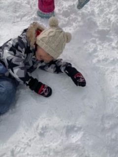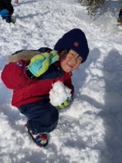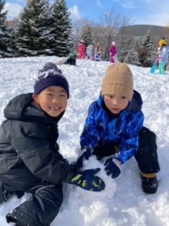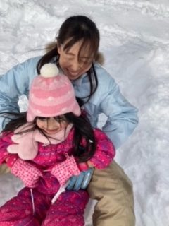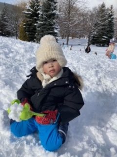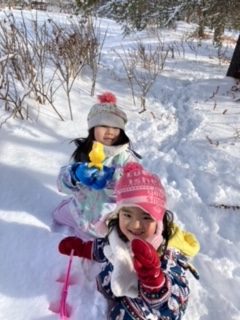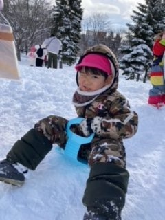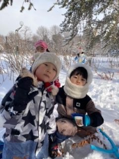 雪玉作りと米ぞりやビニールそり、プラスチックそりなど自分の遊びたいものを選んで遊んでいます。