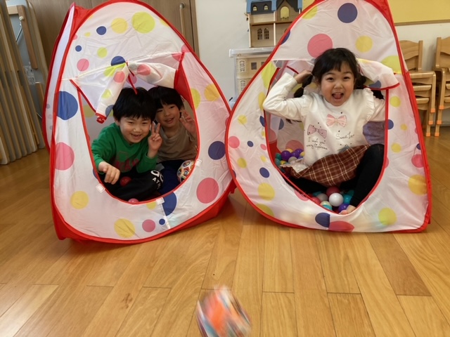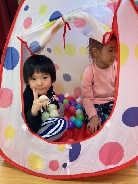 もも組もうめ組もお出掛けして空いていたので、2階フロア全部を使って伸び伸びと遊ぶ事が出来ました。