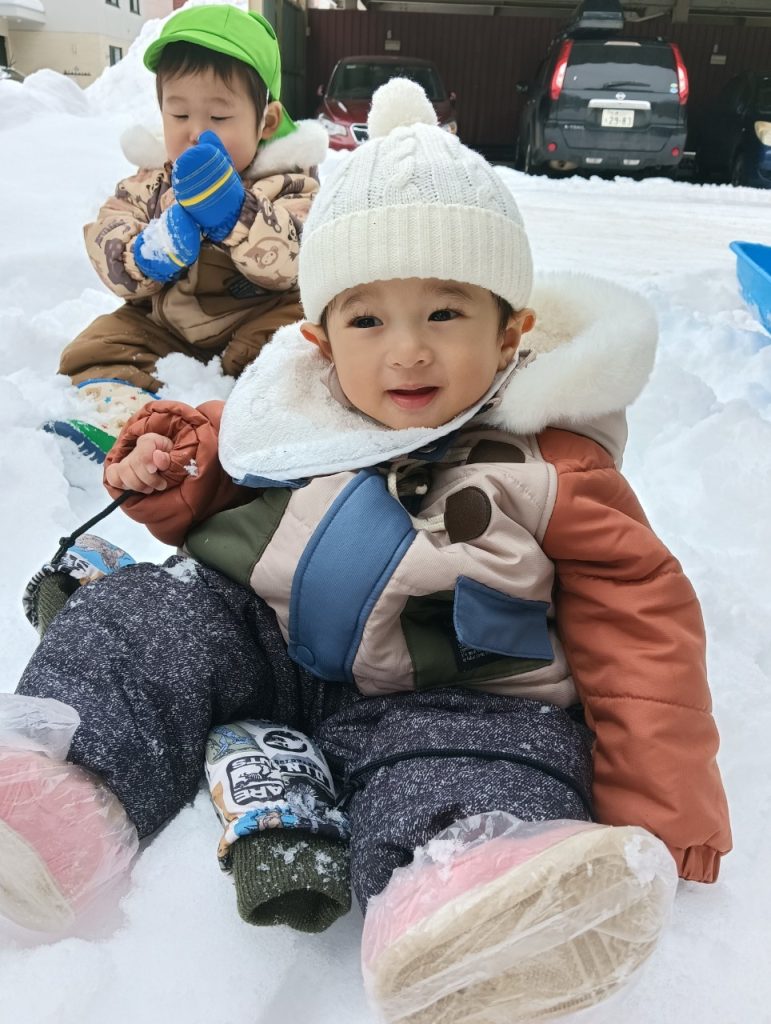つるつる路面で歩くのに苦戦していましたが、頑張って歩いた子ども達です。