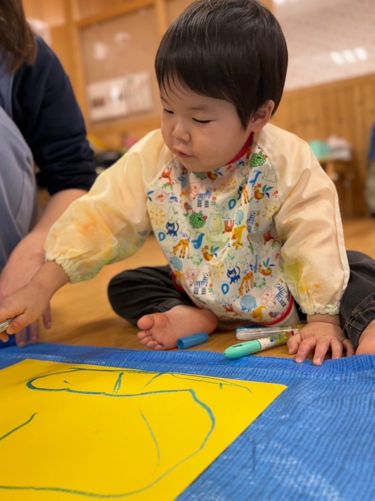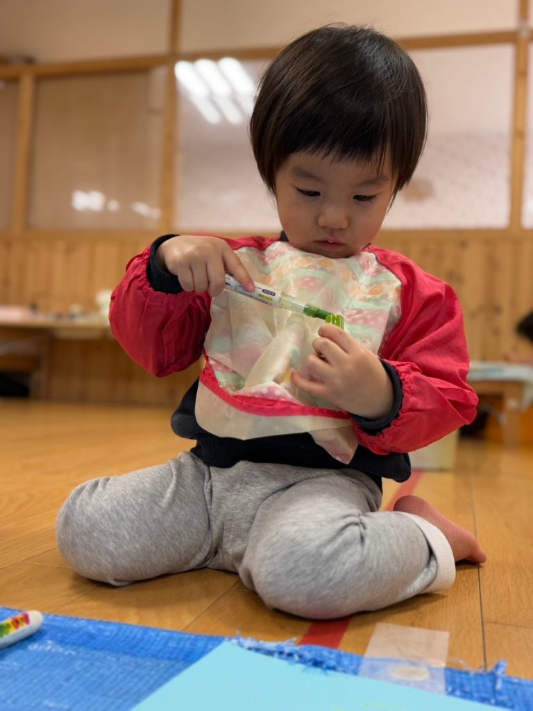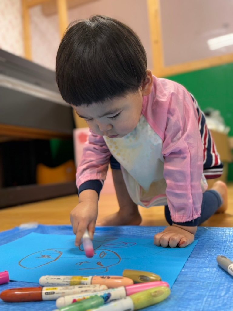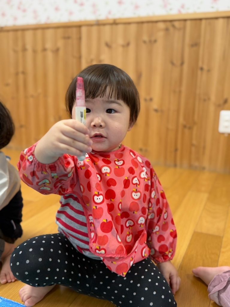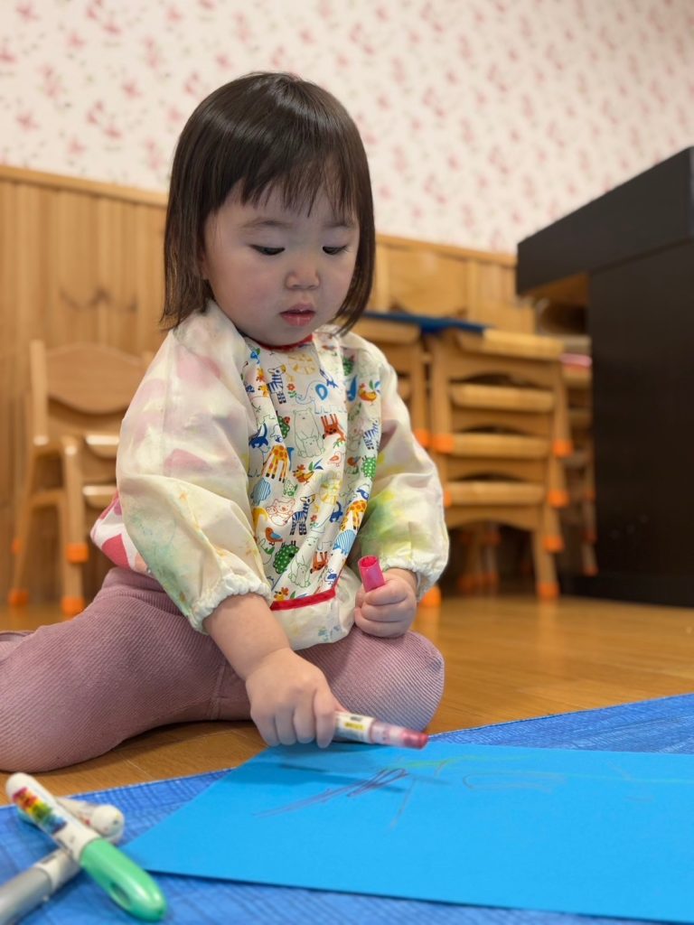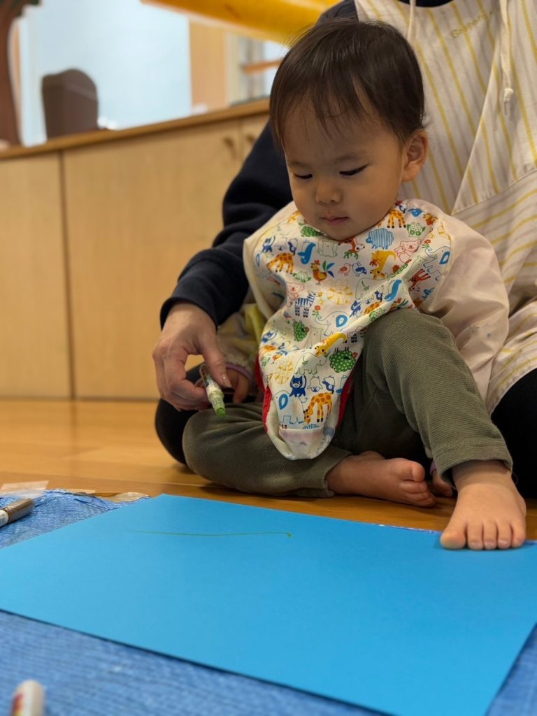 クレヨンの芯を出すのに苦戦する姿もありましたが、