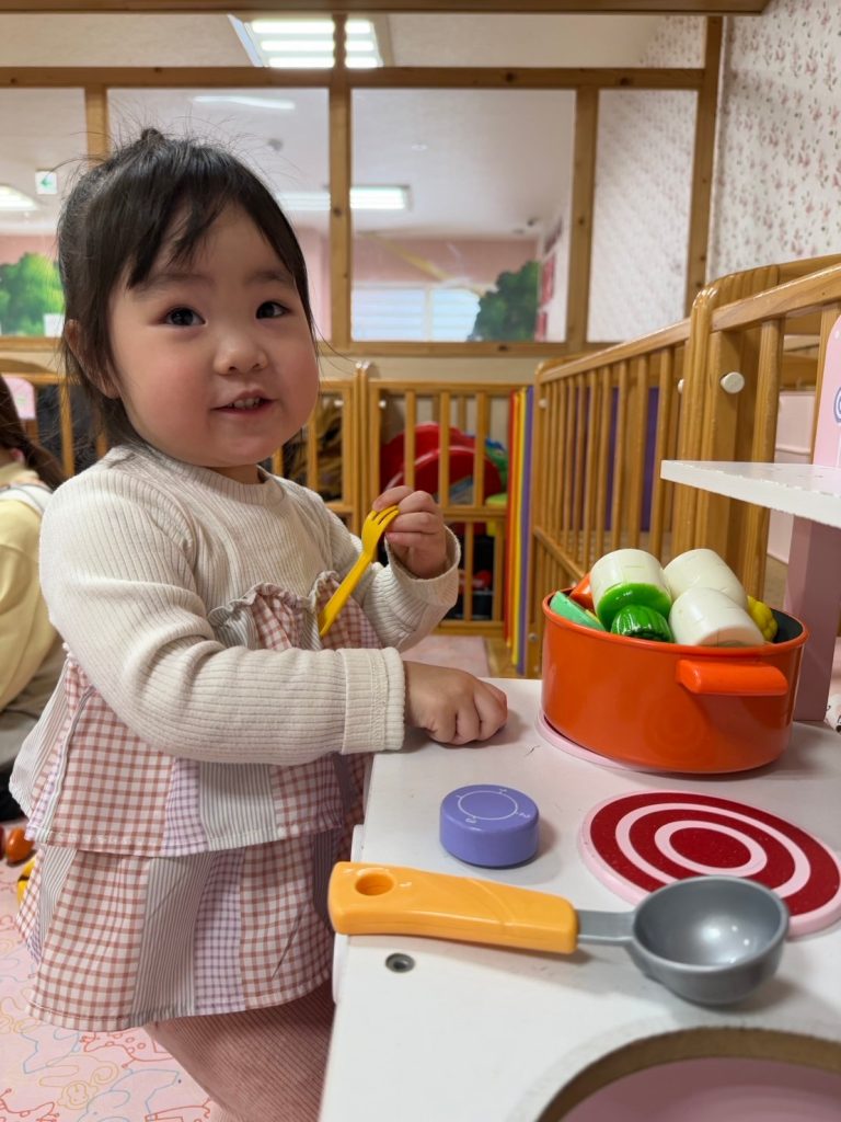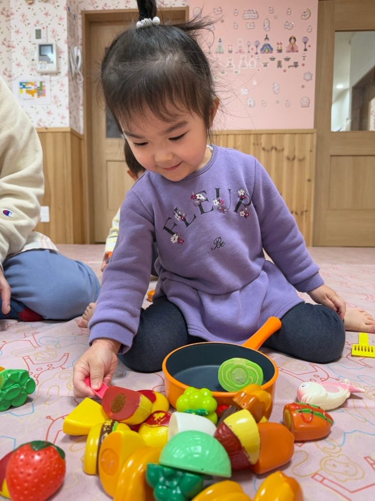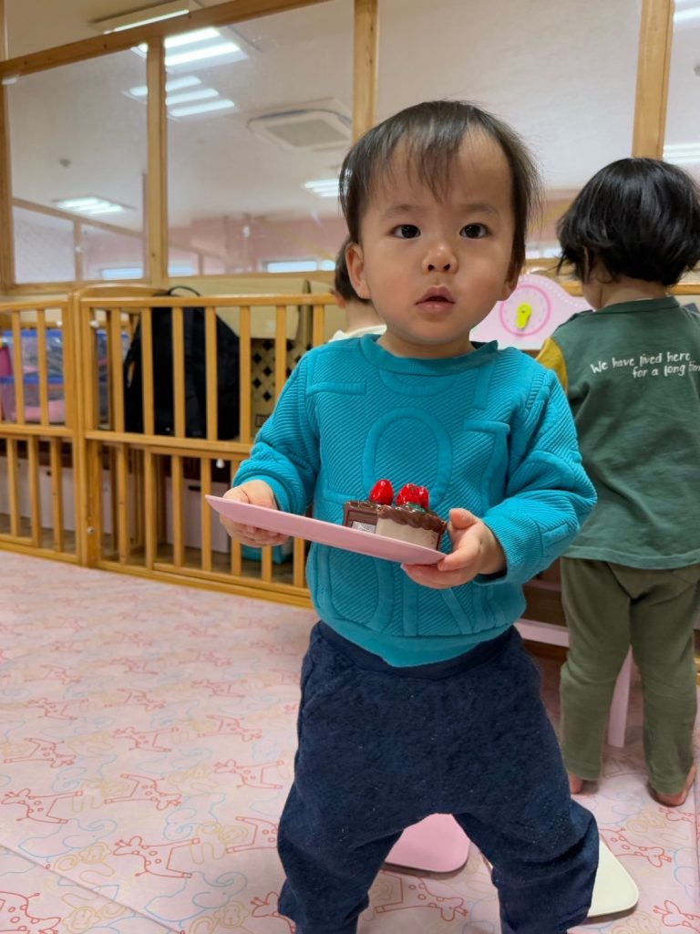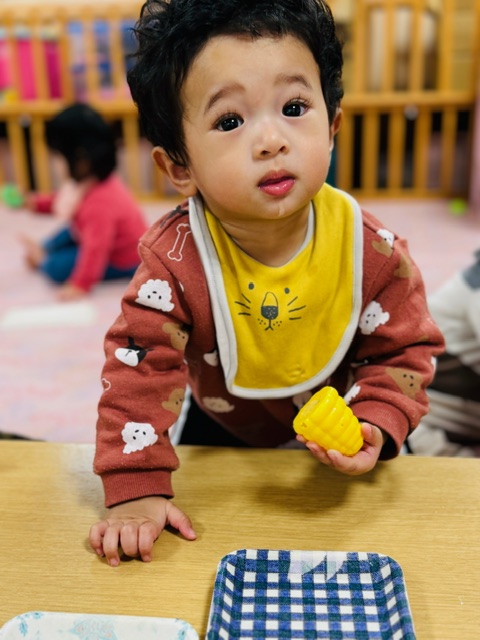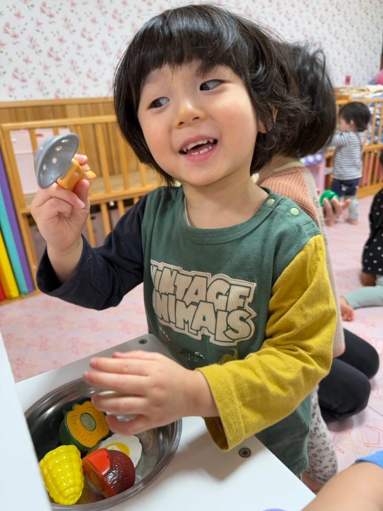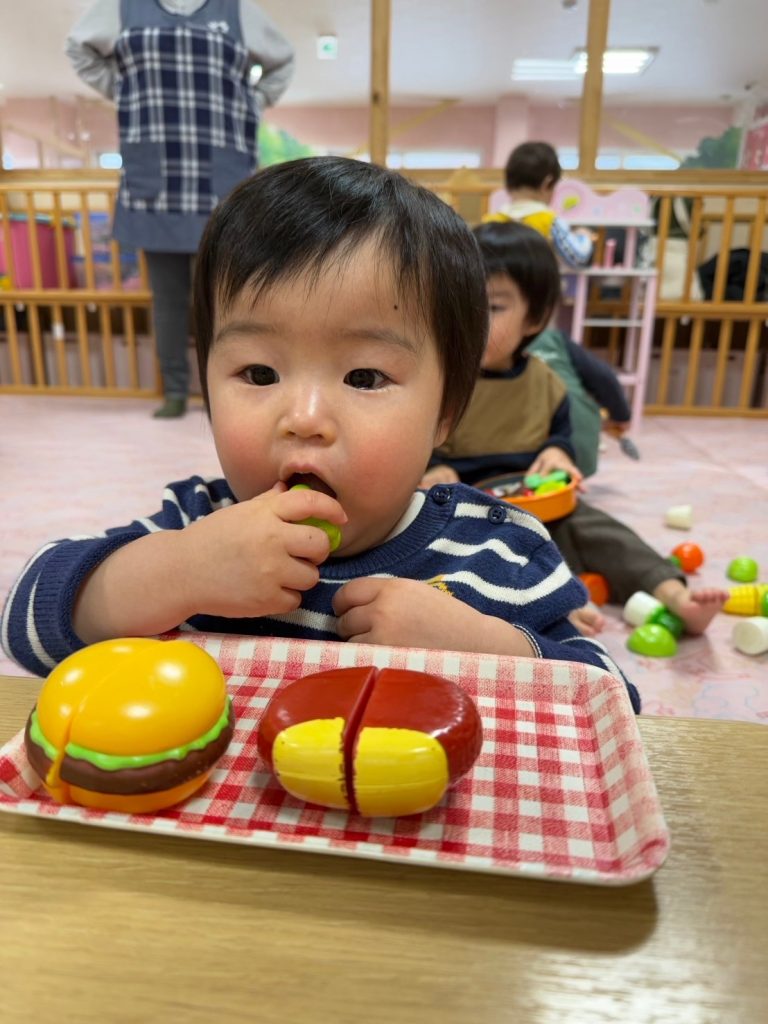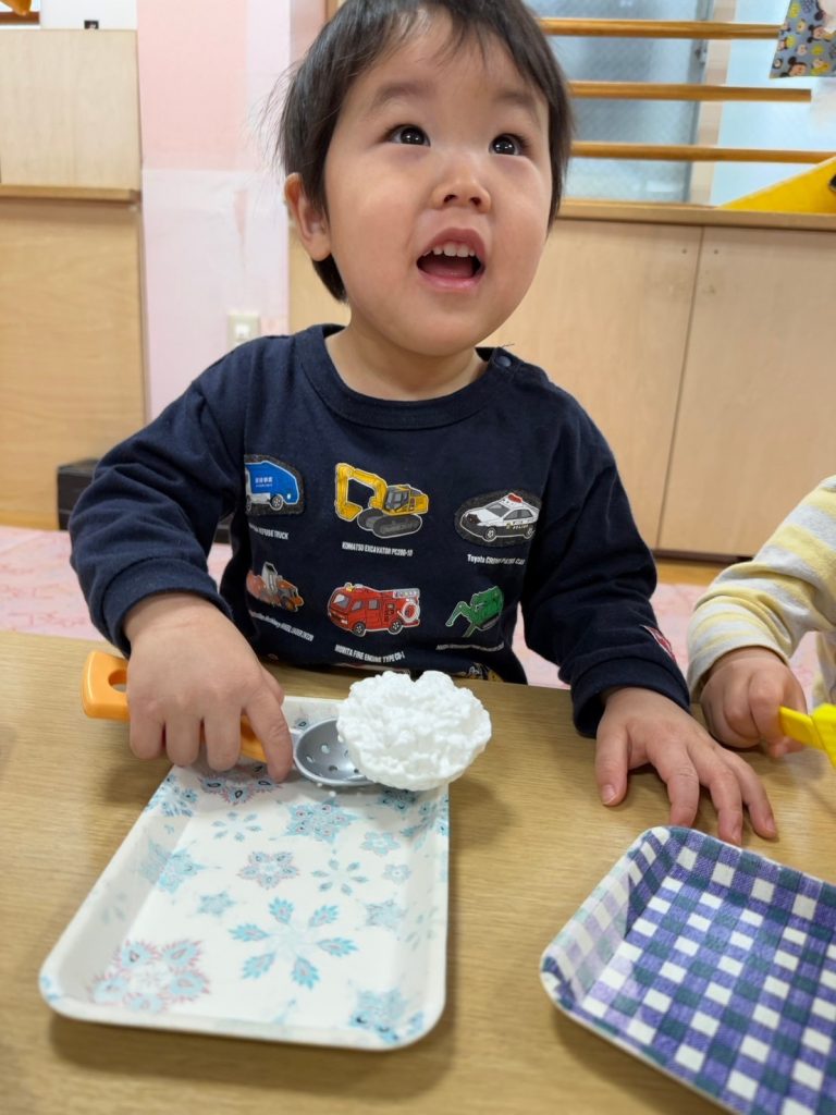 お皿に乗せて食べてみたりと楽しんでいた子どもたち。