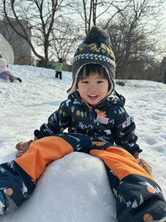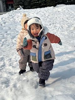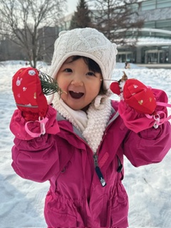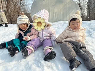 雪山をおしりで滑ったり、走り回って楽しみました。
